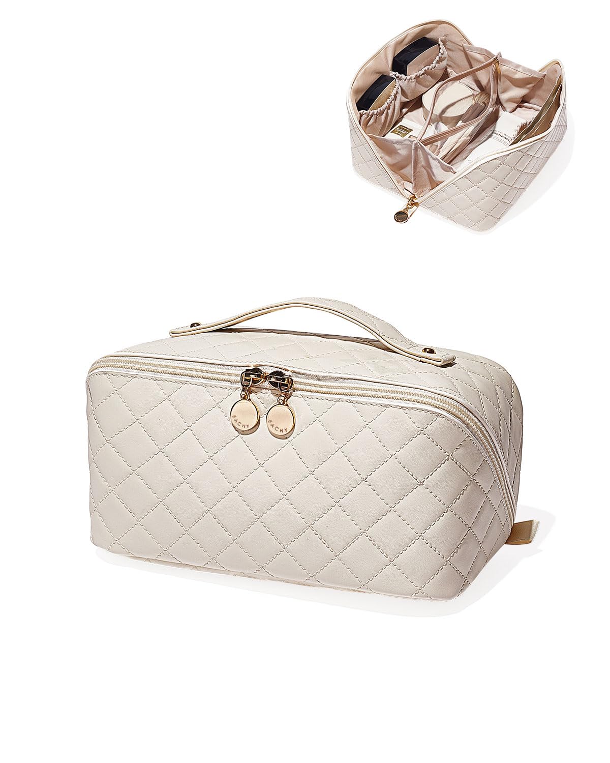 Lleva todos tus cosméticos con estilo y facilidad. El regalo perfecto para la amante del maquillaje. Neceser de viaje EACHY, práctico, espacioso y con un diseño inteligente.