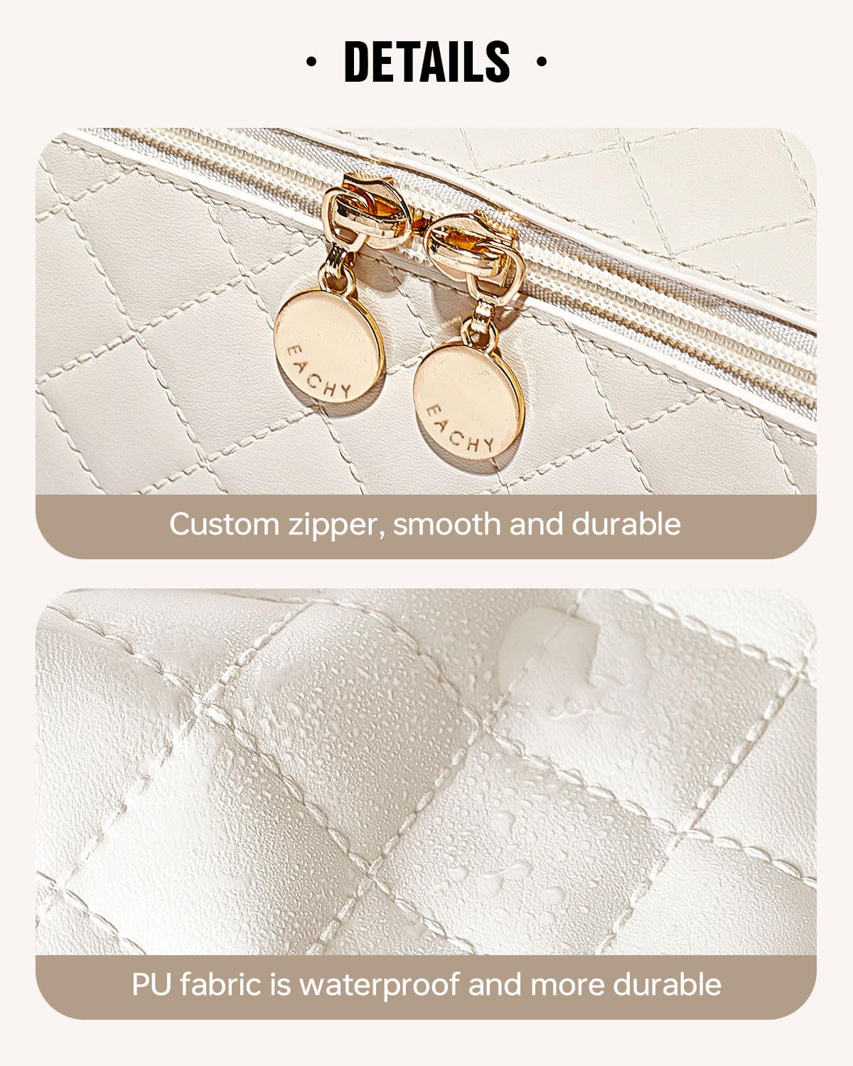 ¡Mantén tu maquillaje organizado ya mano con estilo! Adquiere hoy mismo tu necesidad de viaje EACHY en beige mediano.