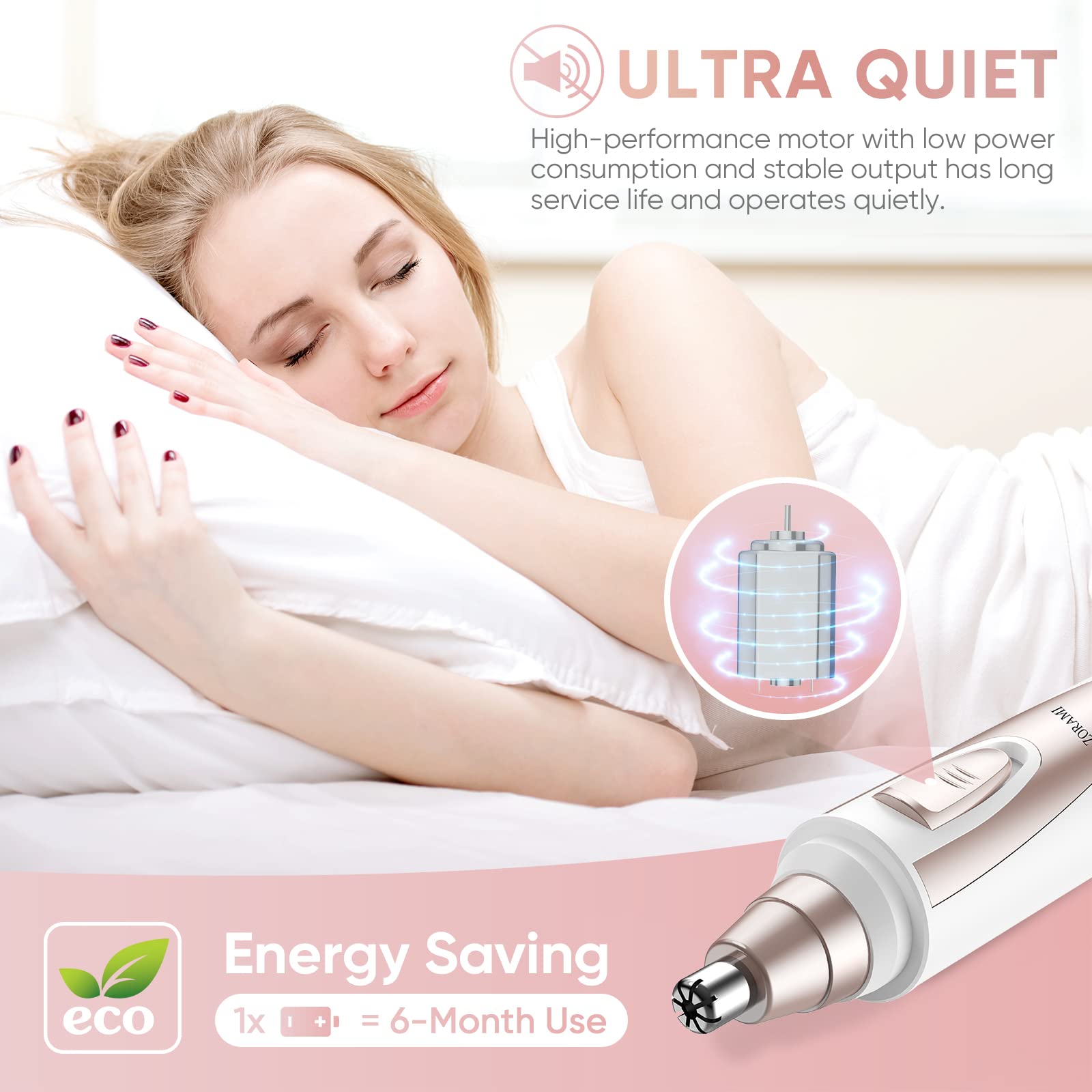 - Ahorro de energía y funcionamiento silencioso: El motor mejorado es más potente, pero consume un 5 % menos de energía. 1 pila AA (no incluida) ofrece una duración de más de 6 meses con 5 minutos de uso continuo. Este recortador de vello nasal es ideal para viajes y excursiones. Con un ruido de funcionamiento inferior a 50 dB, podrás utilizarlo con total libertad.
