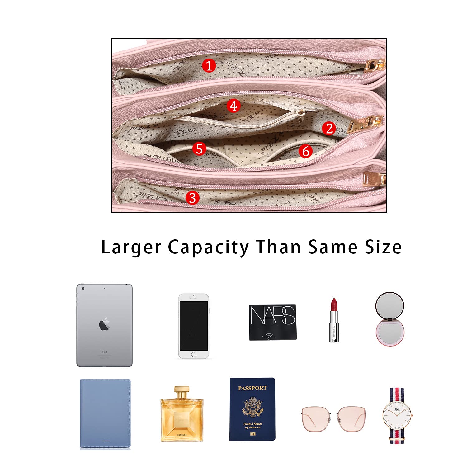 - Más espacioso y elegante: el diseño teórico de 3 compartimentos principales con cremallera hace que este bolso de tamaño mediano tenga una mayor capacidad para llevar y organizar sus elementos esenciales diarios y más.