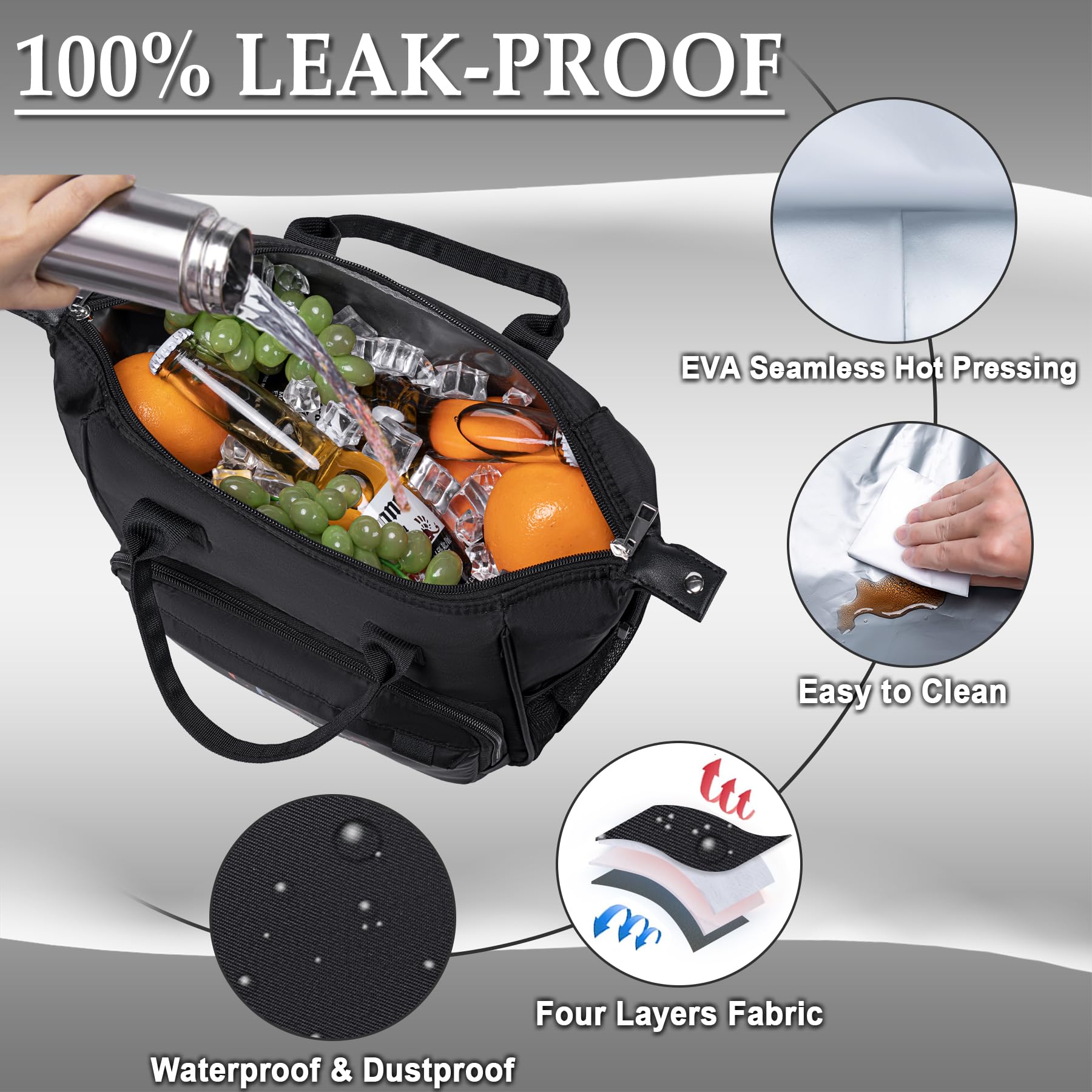 - A prueba de fugas y con aislamiento térmico: Las loncheras reutilizables cuentan con un forro de poliéster impermeable y ecológico, suave, a prueba de fugas y fácil de limpiar. Su acolchado con espuma EPE de 6 mm y un tejido exterior de poliéster 900D y lona compuesta mantendrán la comida fresca o caliente donde quiera que estés.