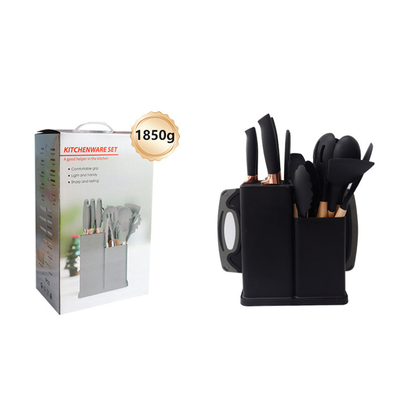 18 piezas es la combinación perfecta de funcionalidad y diseño. Con un elegante mango de madera y una base de silicona de alta calidad, incluye todo lo que necesitas para cocinar con comodidad y estilo. Además, viene con un práctico contenedor que hace juego.