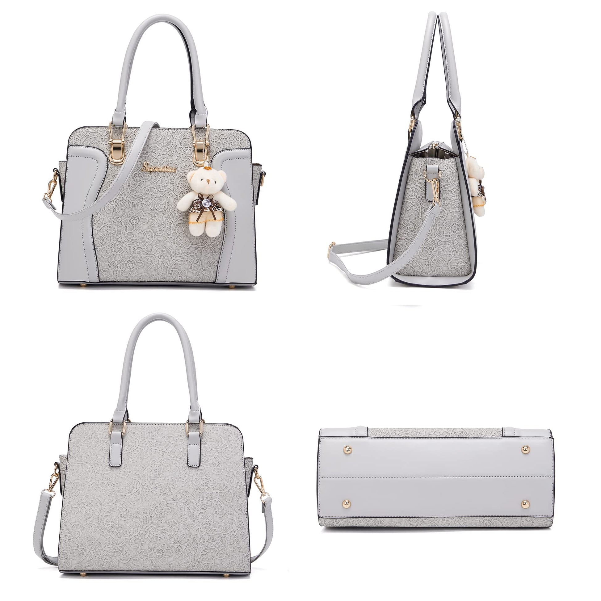 - Diseño: El logotipo de la marca dorada y la delicada decoración de muñeco de oso se ven más de moda. Cierre de cremallera superior. Decorado con asas superiores, muy cómodo de llevar. Incluye herrajes dorados de alta calidad, cremalleras y tachuelas planas en la parte inferior. Puede usarse como bolso tote, bolso de diario, bolso de hombro, bolso de asa superior, bolso de trabajo, etc.